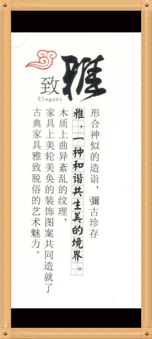 公司不仅以承载民族文化、创作传世家具为己任,并且全力为消费者提供放心、优质的服务。